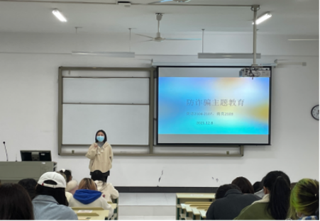 为了提高同学们的防诈骗的安全意识,在辅导员鲁玉婷的组织下,12月8日晚18:30,英语2101—2103班全体同学在学2506教室召开“提高安全意识,防范网络诈骗”的主题班会,会议由辅导员鲁玉婷主持。