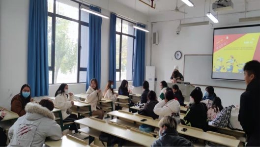 会议伊始,黄昱嘉向同学们介绍了召开这次班会的目的:期末考试临近,希望同学们认真复习,全力备考;同时也为每位同学分发了精美的小礼品:一套2022年的日历,希望同学们在2022年继续追求自己心中的梦想,实现人生价值。紧接着,为了增强班集体的凝聚力,黄昱嘉组织同学们做游戏,游戏种类丰富多样,有“逢七必过”、“默契接龙”、“谁是卧底”三种,在游戏过程中辅导员和班主任全程参与,以这种轻松愉悦的方式让同学们与老师们进一步增进了感情。游戏后班主任罗峰老师为激励同学们学习第二外语的兴趣,教了大家三句法语自我介绍常用句型,并给表现优异的同学颁发了小奖品。