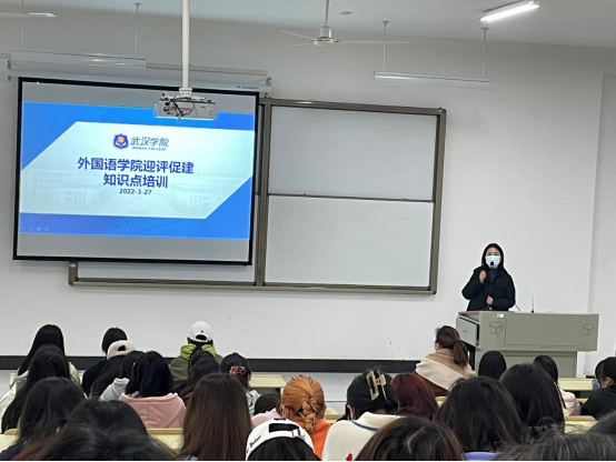 为了进一步加强本科评估知识教育,深化全体学生对教学评估重要性的认识,英语2104-2107班、商英2103班全体同学于3月27日晚7点,在学院楼2406室开展了迎评促建知识点培训会议,会议由辅导员鲁玉婷主持。