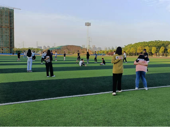 近期湖北省新冠疫情形势,学校严格落实上级防疫有关精神,全体师生团结一心,共同抗疫,非必要不外出。为了让大家在校园管控下能够缓解压力,释放身心,外国语学院英语2101班的同学们,在操场上以文体活动的形式开展了一次特殊的联谊会。