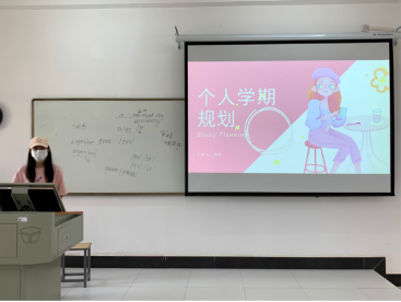 接着,副班长杨航同学介绍了个人学期的规划,她建议同学们不仅可以多参加大学活动,丰富校园生活,还可以积极报名学科赛事,提升学科素养。她提出“一分耕耘,一分收获”,个人成长与生活息息相关。大学就是让人成长的地方,利用丰富的校园资源,让自己成长为复合型应用型人才。