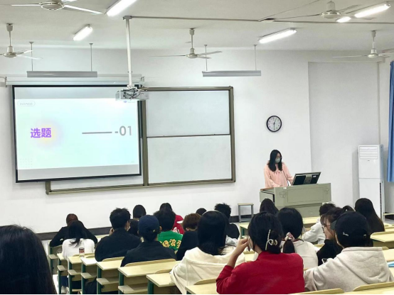 汪亦鑫同学现担任国家级项目负责人,她为同学们讲述了自己的参赛经验、如何展开项目、如何准备结项等。她特别强调,国家级项目需要至少2篇课题论文才能结项,除此之外,他们还准备了调研报告、总结报告、问卷数据等更多材料。她建议同学们认真准备,朝着国家级项目努力。