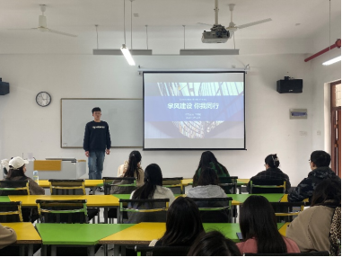 为加强班级学风建设,提升班级学习氛围,外国语学院英语2002班于3月27日下午14:50在1号学院楼305教室召开了“学风建设,你我同行”的主题班会。此次会议由班长李嘉欣主持,班主任赵静老师和全体同学参加了此次班会。