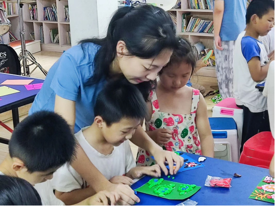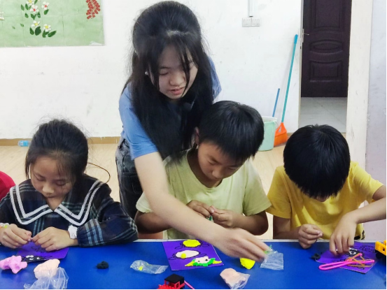 活动进行期间,小朋友们犹如小小艺术家,专注地塑造着自己的作品,脸上洋溢着灿烂的笑容。志愿者们细心地观察每一个小朋友的创作过程,及时给予指导和帮助。志愿者刘坤说:“在黏土制作活动中,小朋友们都有自己想做的物品,我就在旁边观察她们的作品,看到停止制作的小朋友我就去询问她们是否遇到了什么困难,帮她们及时解决问题。”志愿者们不仅是黏土艺术的引导者,更是小朋友们心灵成长的陪伴者。