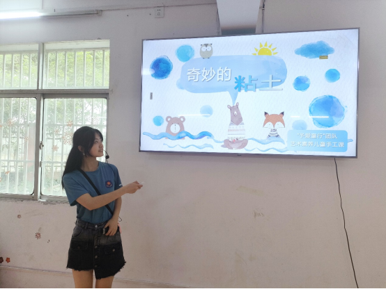(图为志愿队队长朱婷玉开展黏土制作活动/摄影:尹婉莹)