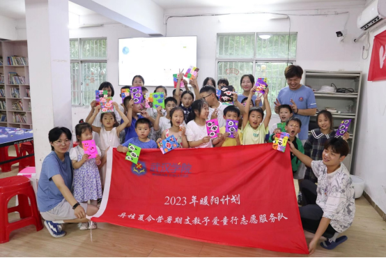 (图为活动结束之后志愿队与小朋友们合照/摄影:倪雨婷)