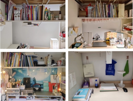 寝室虽小,却五脏俱全。井然有序的物品安置在书桌上,课本整齐立在一边,衣物按类别整齐放置,牙杯、牙刷整齐排列。整个寝室给人以整洁和舒适的感觉,让人能感受到女生们对生活环境的用心维护。自入学以来,她们总是坚持健康的生活方式,定时定期打扫寝室卫生,保证寝室环境的整洁,为学习和生活创造良好的环境。