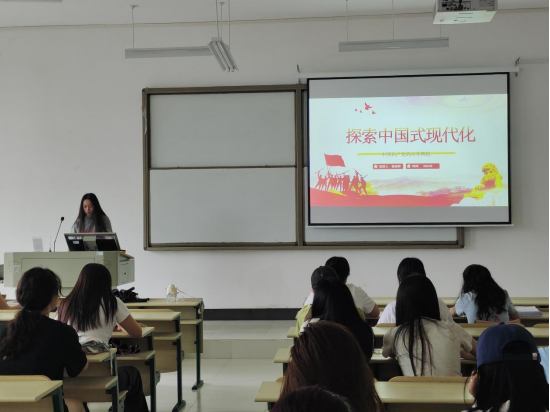 中国式现代化是在实现中华民族伟大复兴中探索出来的,中国共产党的百年辉煌,深刻体现在中国特色社会主义现代化建设的宏伟事业上。张雨婷从中国式现代化的概念和来源、中国式现代化的根本政治前提和制度基础、走出一条中国式现代化道路以及新时代青年以青春助力中国式现代化四个方面开展理论宣讲、领学。