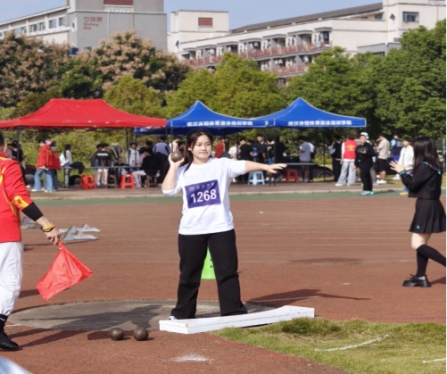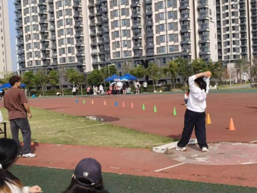 运动会期间,一场别开生面的“英语投壶”活动在操场上掀起了参与热潮。该活动巧妙地将英语学习与传统文化体验相结合,为学生带来独特的跨学科实践机会,这一设计既考验学生的语言能力,又增添了活动的知识性和挑战性。不少同学表示:“既能锻炼英语,又能体验传统投壶,还能赢得奖品,实在太有意思了!”活动现场气氛热烈,同学们在翻译环节认真思考、沉着应答,在投壶环节凝神屏息、各展身手。