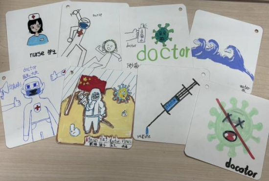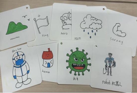 在江夏区实验小学的课堂上,孩子们用最纯真的画笔连接历史与当下。大别山精神是画纸深处绵延的青山,象征着扎根与坚守;抗洪精神化作山脉旁奔涌的波浪,与山峦共同筑起坚不可摧的屏障;抗疫精神则化为青山绿水间身穿防护服的洁白身影,口罩与病毒图案的对比,生动讲述着守护与希望。山水相连,人景相融——简单的元素组合中,蕴含着小作者们对“坚守、拼搏、奉献”的质朴理解。