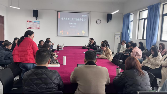 为进一步发挥优秀班主任的示范引领作用,搭建班主任工作交流平台,提升班级管理与育人工作实效,3月18日下午,外国语学院于学253会议室开展了优秀班主任交流分享培训活动,全院班主任参加了学习。谢承凤、徐梦瑶两位老师获评“优秀班主任”,在会上结合自身工作实践分享育人经验。