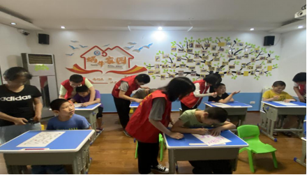 一下午的时光很快就过去了,我们队员走的时候,孩子们热情的为我们开门送别,跟我们说再见。在回学校的路上,我们队员们也感触颇深。从最开始去蜗牛家园的路上的忐忑、担忧的心情,到和孩子们深深接触后的放松,队员们的心境都有了一个很大的转变。这不仅仅是我们给他们带去关爱的志愿之旅,同时也是这些孩子们给与我们的最质朴的、纯洁的感情,给我们带来了心灵上的触动。我们一起在爱的包围下度过了愉快的下午。