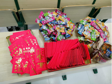 除此之外,鲁老师还精心挑选了红包抽奖的背景音乐,策划了红包发放环节。首先,她邀请各班上学期考第一名的学生上台抽奖,以表扬这些优秀的学生,树立良好的学习榜样。然后,她一一给学生们分发糖果和红包。最后,同学们一起打开红包,那一刻教室里充满了惊呼声,沸腾起来,将班会气氛推向高潮。