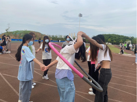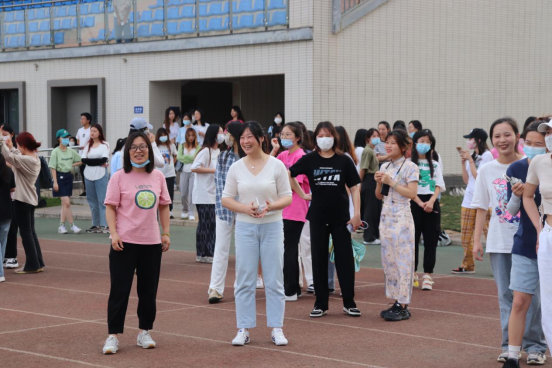 为帮助同学们适应疫情防控形势严峻状态,稳定心态,缓解因校园封闭管理给同学们的学习生活模式带来的变化,呼吁同学们关注自己的心理健康,2022年“5.25”心理健康日,外国语学院在学校操场举办减压“俱乐部”心理趣味运动会。外国语学院党总支副书记、副院长曹辉和“阳光驿站”心理健康负责人李莹到活动现场为同学们加油助威,与同学们共同参与比赛项目。