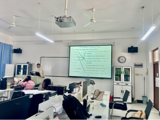 分享会根据课部统一安排,于学院楼2503办公室(2024级本科班教学团队)和2502教室(2025级本科班教学团队)设立两个分会场,分别由公共外语部副主任牛利平、李娜主持,部门全体教师(含银龄教授)参与。会上,教师们依次登台,结合自身教学、备课与科研实践,详细展示了运用人工智能技术破解教学难题、提升育人效能的创新案例。