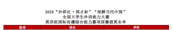 2025年12月8日,备受瞩目的2025“外研社·国才杯”“理解当代中国”全国大学生外语能力大赛国赛在激烈角逐中圆满落下帷幕。在这场汇聚全国外语精英的盛大赛事中,武汉学院外国语学院英语专业学子郭子翀凭借卓越非凡的表现脱颖而出,一举斩获铜奖,为学校赢得了荣誉。